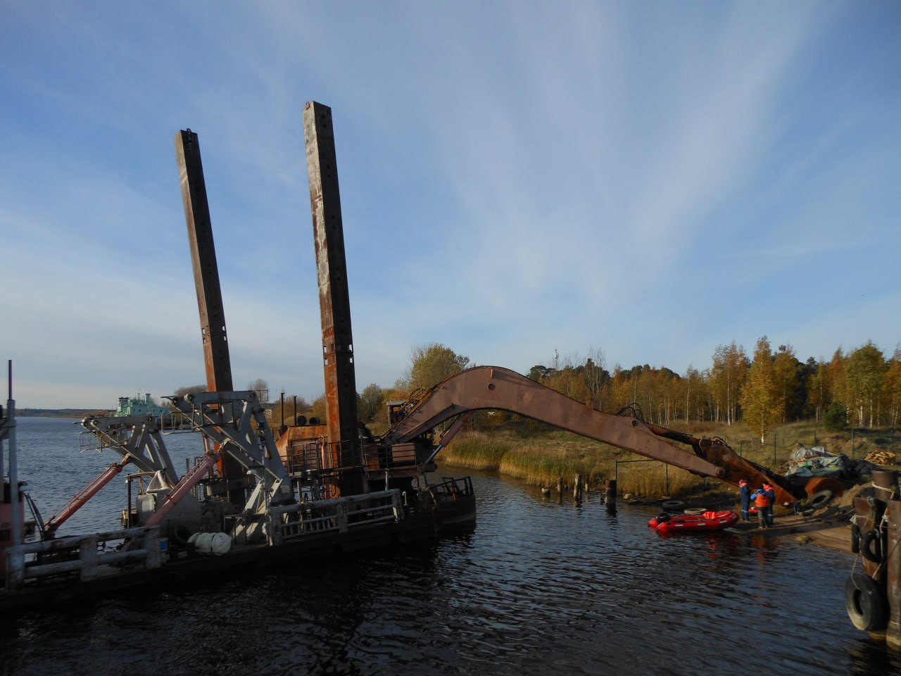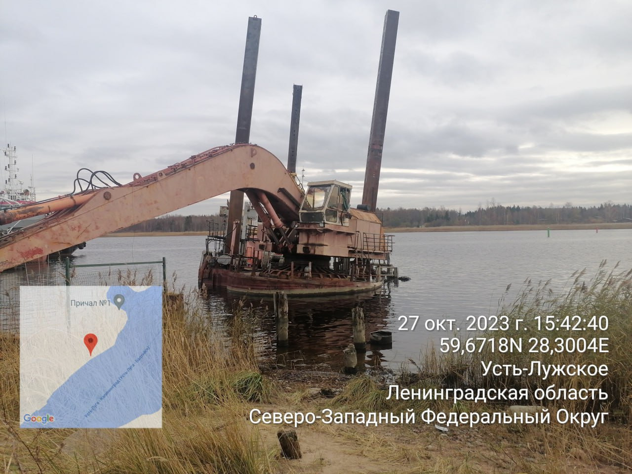 Собственником несамоходного земснаряда "Подводник-3" является петербургское ООО "ГидроСпецСтрой", которое с марта 2023 года находится в банкротстве. В последние годы компания заключала договоры подряда на проведение дноуглубительных работ по порту Усть-Луга, но судя по судебным искам, не все заказчики были довольны сотрудничеством.