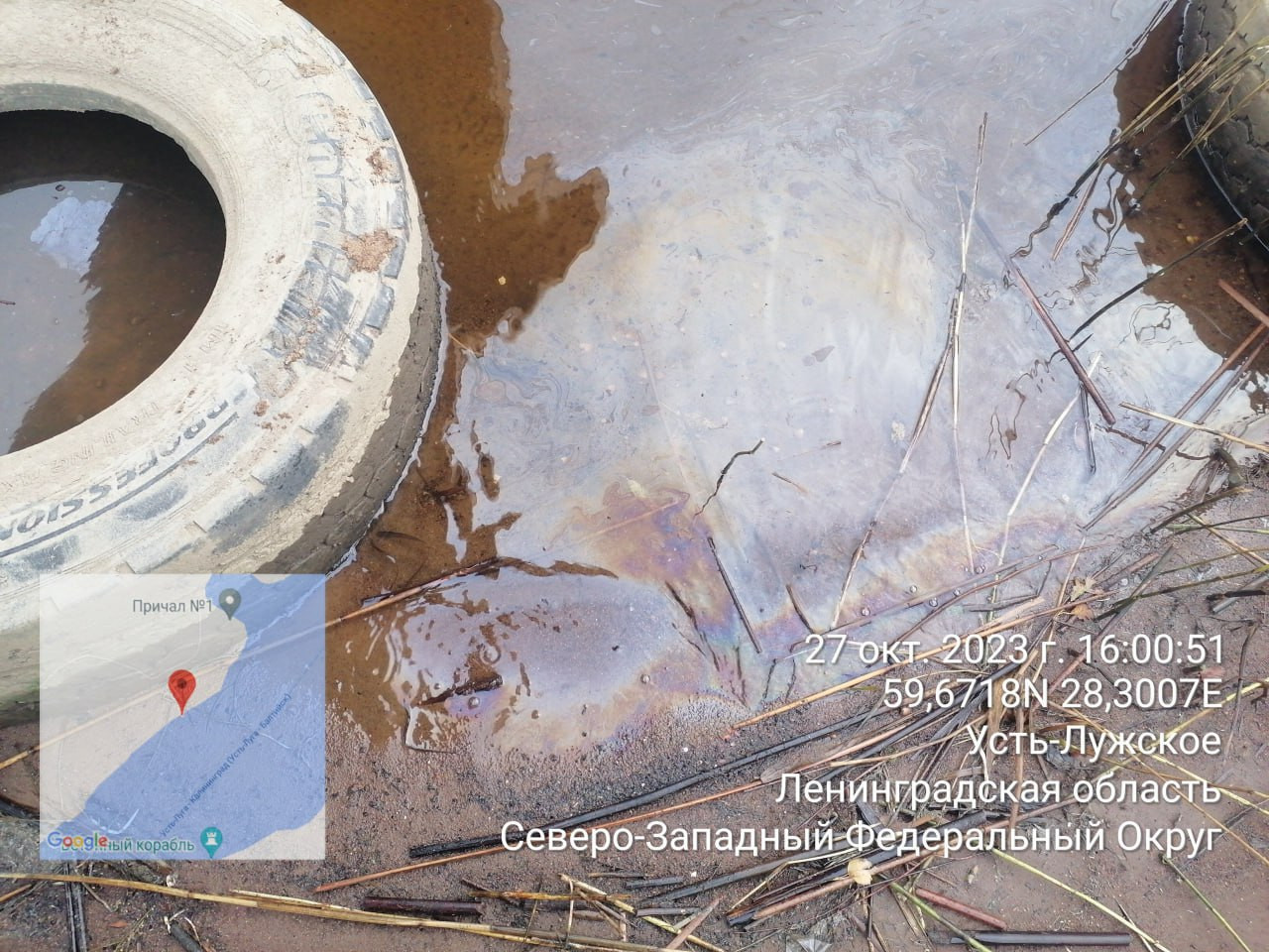 "В ходе осмотра государственными инспекторами установлено, что судно находится в притопленном состоянии, что привело к появлению в устье впадения реки Луга в Финский залив нефтяной пленки и радужных разводов. Факт загрязнения подтвержден результатами лабораторного исследования ФГБУ "ЦЛАТИ по СЗФО" проб природной воды. Установлено превышение концентраций нефтепродуктов в пробах воды, отобранных в водном объекте", - сообщили в пресс-службе Северо-Западного Росприроднадзора.