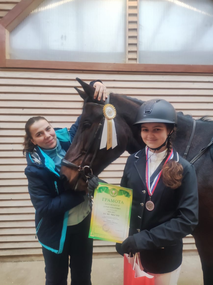В этот раз их верным партнером стала гнедая кобыла по кличке Фиалка. Не всё прошло гладко, как хотелось, в связи с плохими погодными условиями, и вставшим грунтом на манеже, который помешал нашей команде подготовиться на все 100%. Вопреки всем трудностям при подготовке, наша команда не осталось без медалей!