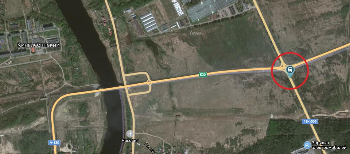 "Яндекс.Карты", расстояние между поселком Кингисеппским и остановкой "Радуга"