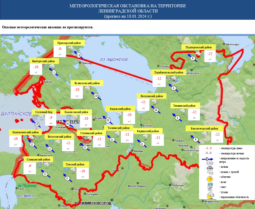 О метеорологической обстановке в Ленинградской области 18 января, сообщает телеграм-канал МЧС ЛО.