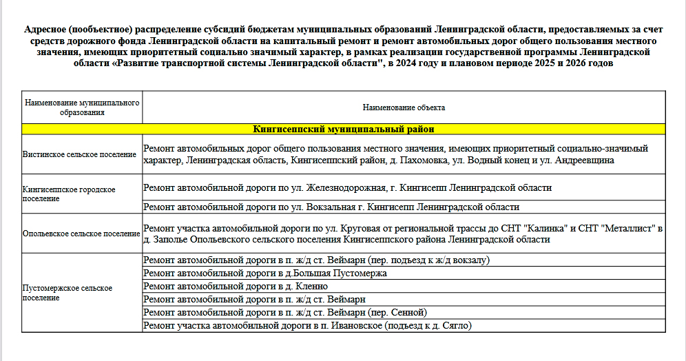 Соответствующее постановление по распределению субсидий поселениям подписал губернатор Ленинградской области Александр Дрозденко. «Одновременно с ежегодным обновлением региональных трасс мы уже больше десяти лет системно поддерживаем развитие муниципальной улично-дорожной сети», — отметил глава региона.