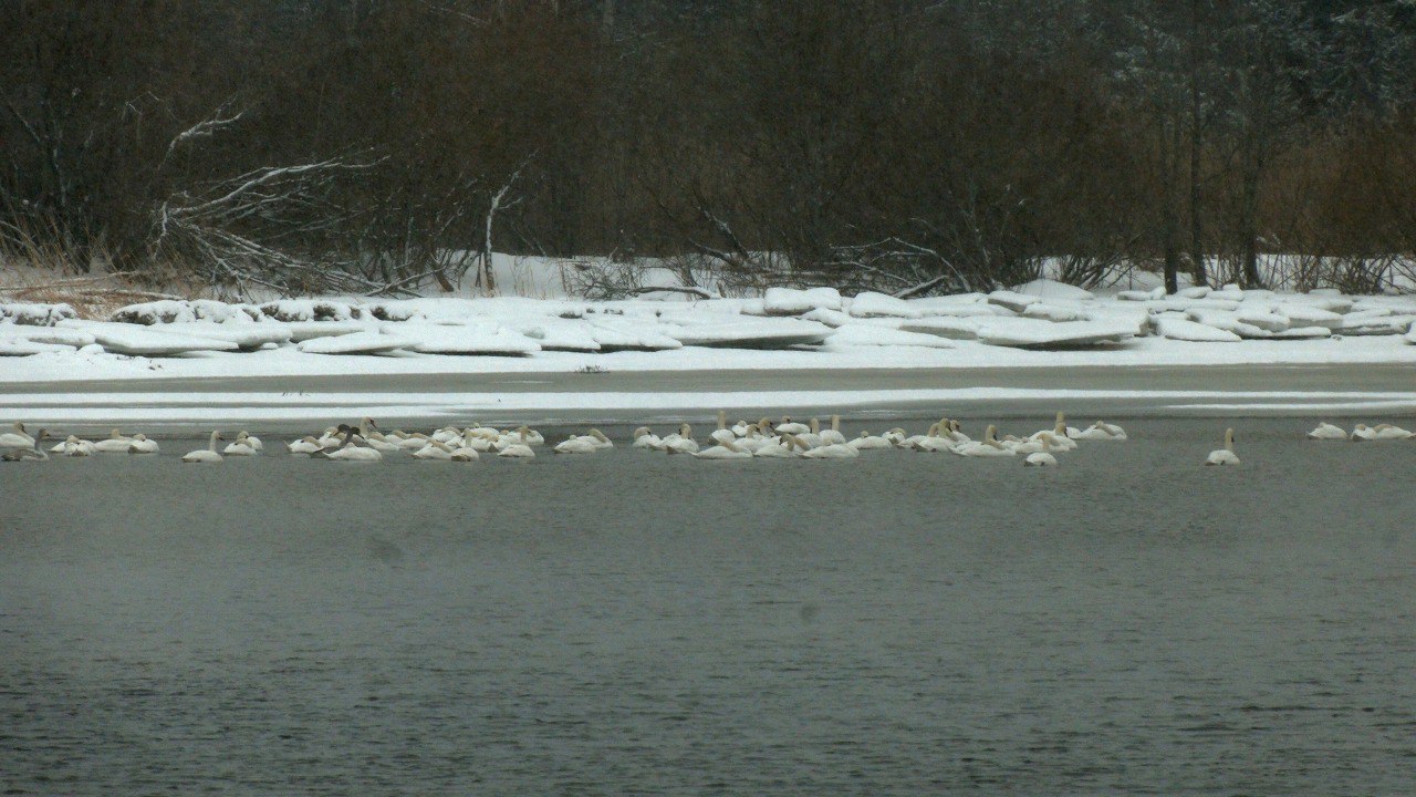В районе города Сосновый Бор Ленинградской области обнаружена большая группировка лебедей! Вместе с орнитологами из зоологического института Владимиром Михайловичем Храбрым и Сергеем Георгиевичем Лобановым, мы насчитали здесь около 250 (!) птиц.