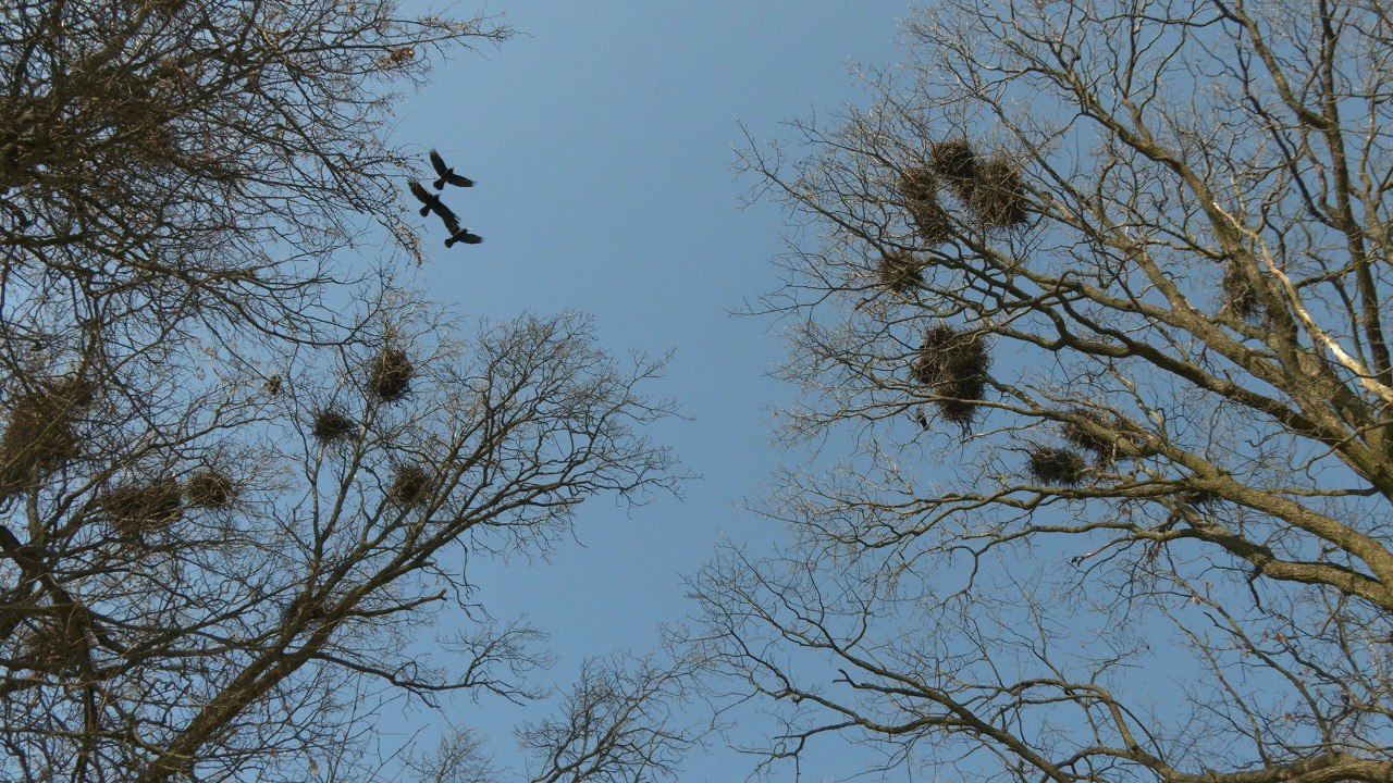 В грачевник на Дудергофских высотах в Петербурге прилетели грачи, сообщает 4 марта телеграм-канал "Каждой твари по паре".