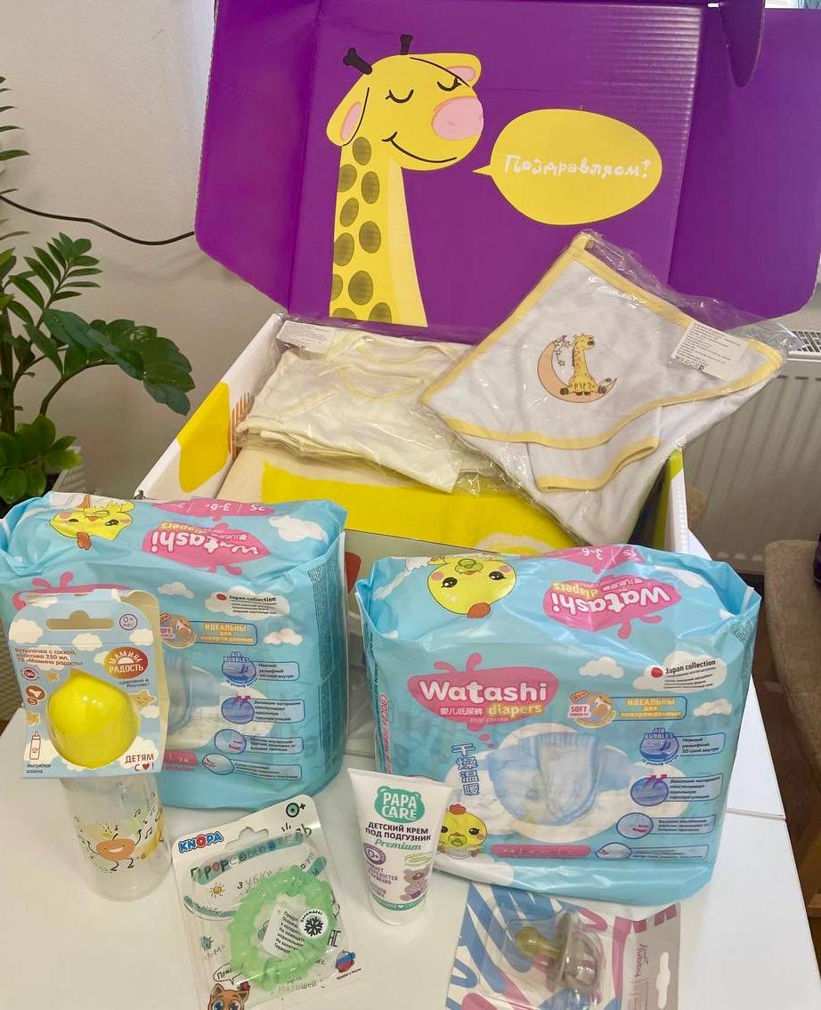 По предложению моего заместителя Николая Емельянова и ленинградских мам, набор из пеленок, боди, ползунков и чепчиков дополним подгузниками, детским кремом, соской анатомической формы и игрушкой-«прорезывателем».