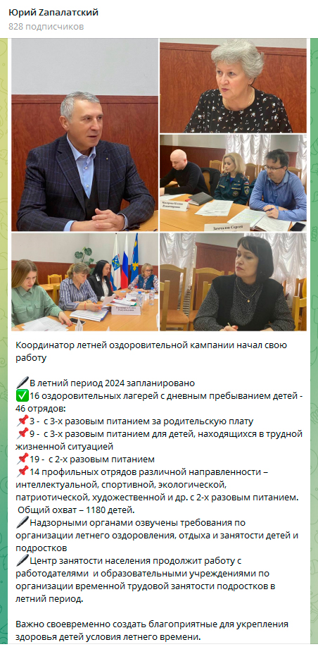 На заседании межведомственной координационной комиссии по вопросам оздоровления, отдыха и занятости детей и подростков при районной администрации сообщили, что на грядущее лето запланирована работа 16-ти детских лагерей. В них предусмотрено три отряда с трехразовым питанием за родительскую плату, девять отрядов с трехразовым питанием для детей, которые находятся в трудной жизненной ситуацией и 19 отрядов с двухразовым питанием. На заседании отметили, что будет организована работа 14-ти профильных отрядов интеллектуальной, спортивной, экологической, патриотической и художественной направленности.