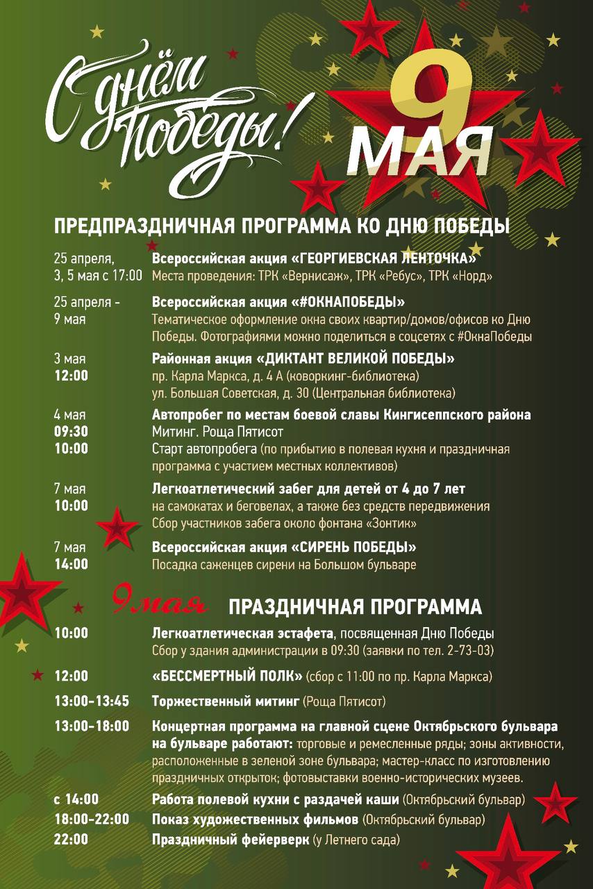 Администрация Кингисеппского района опубликовала праздничную программу ко Дню Победы.
