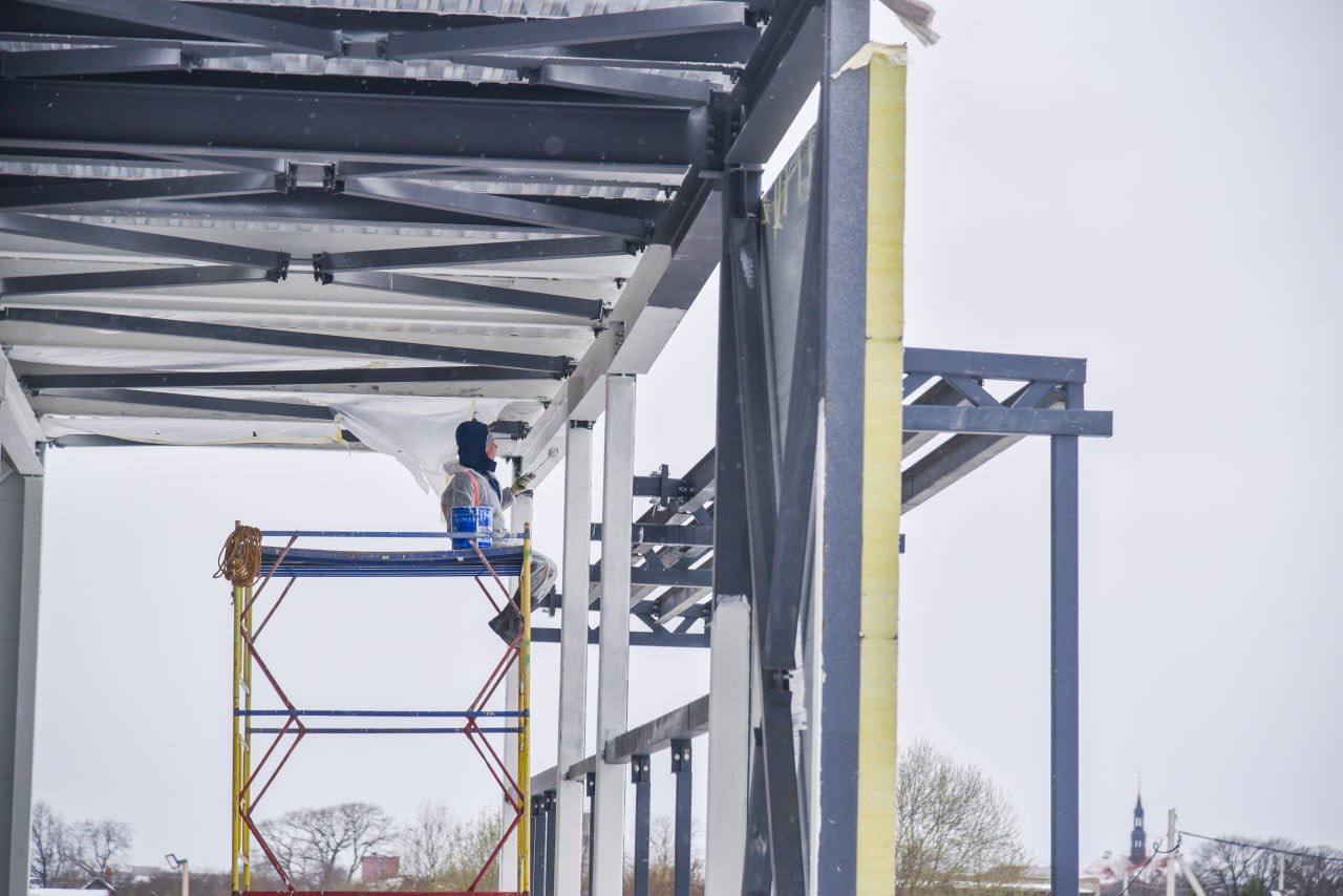 Строители физкультурно-оздоровительного комплекса в Ивангороде приступили к установке фасада