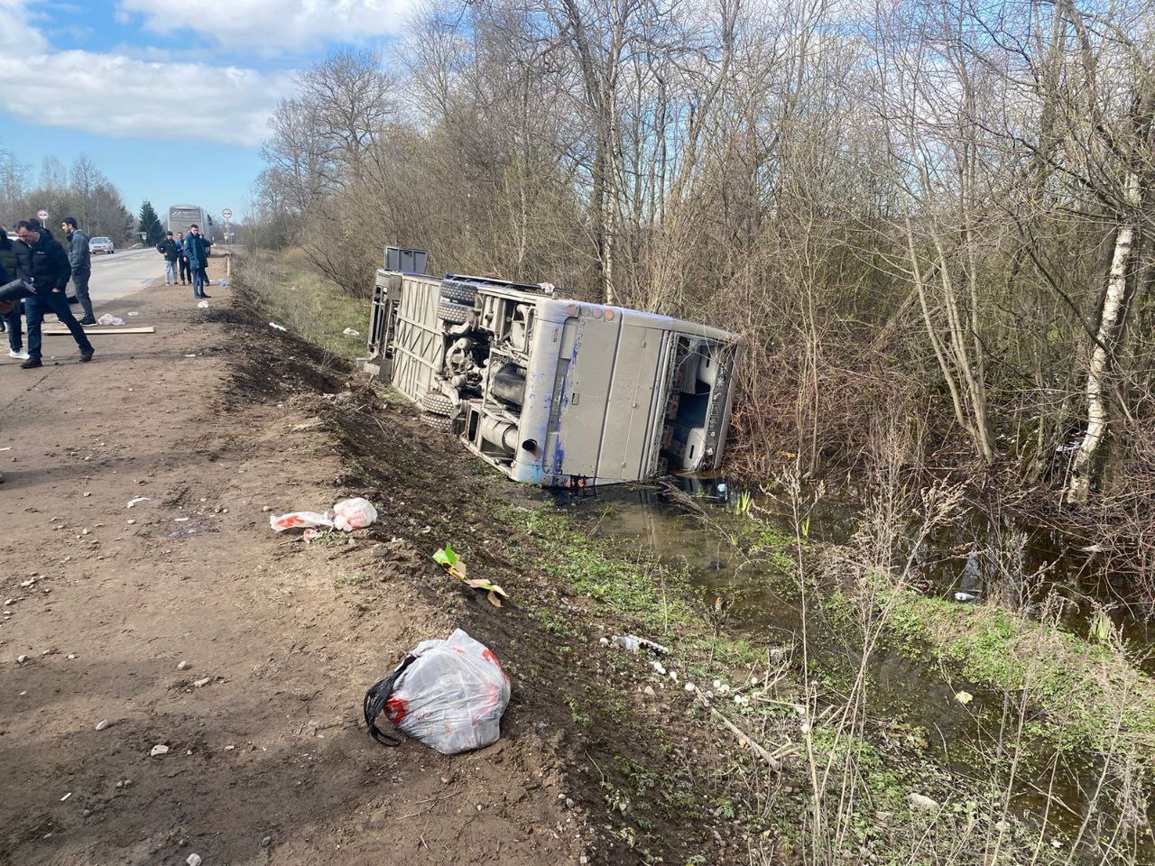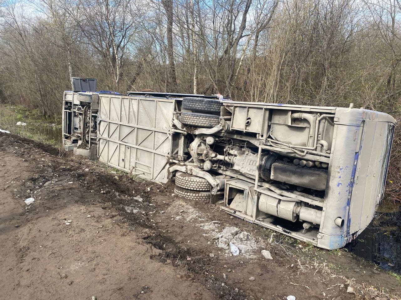 По предварительным данным, 21.04.2024 около 13:30, водитель, управляя автобусом Volvo B12, совершил съезд с автомобильной дороги в правый по ходу движения кювет с последующим опрокидыванием транспортного средства на бок.
