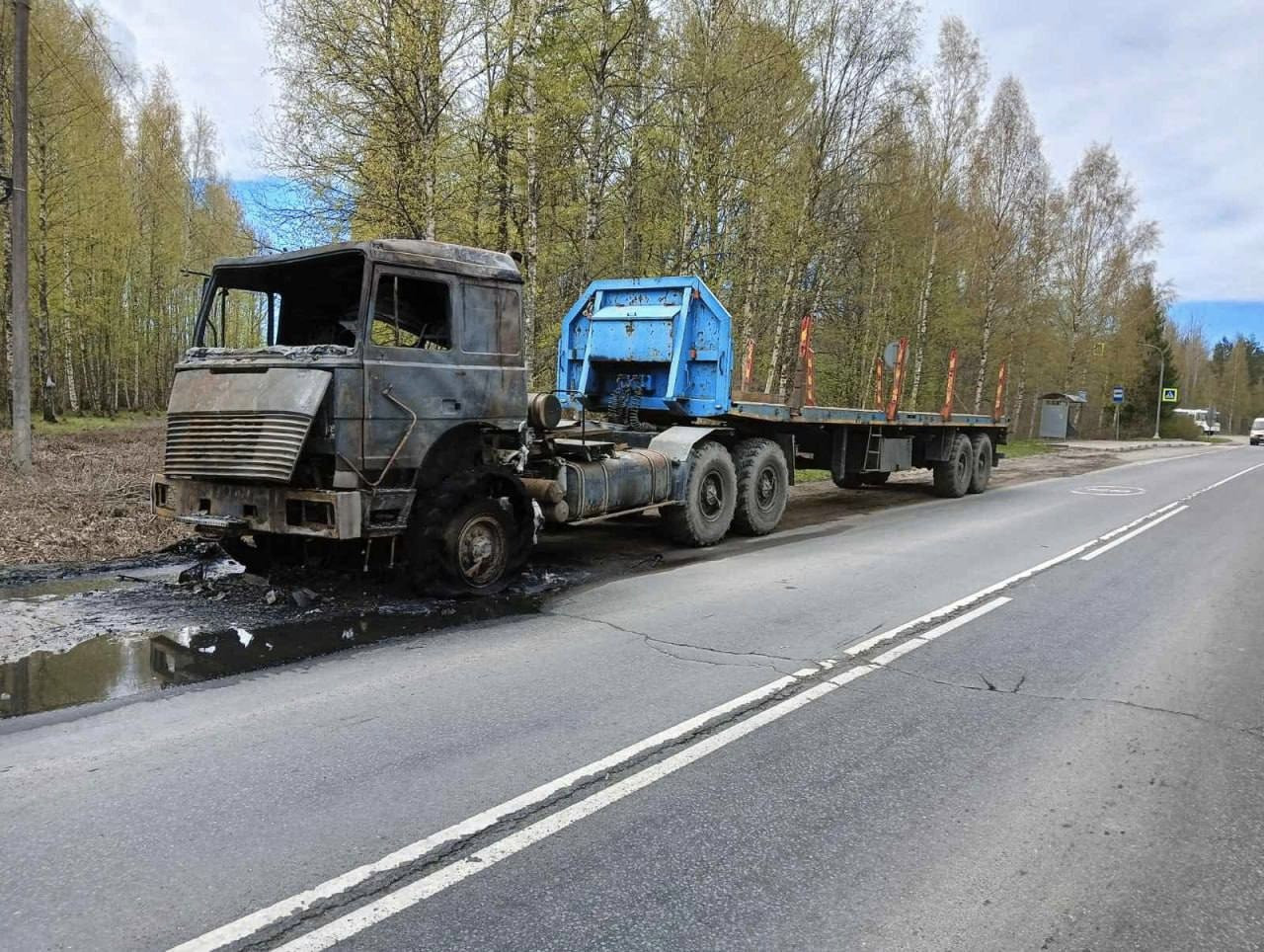 Горящий грузовой автомобиль тушили 11 мая в Кингисеппском районе, сообщает 47news.