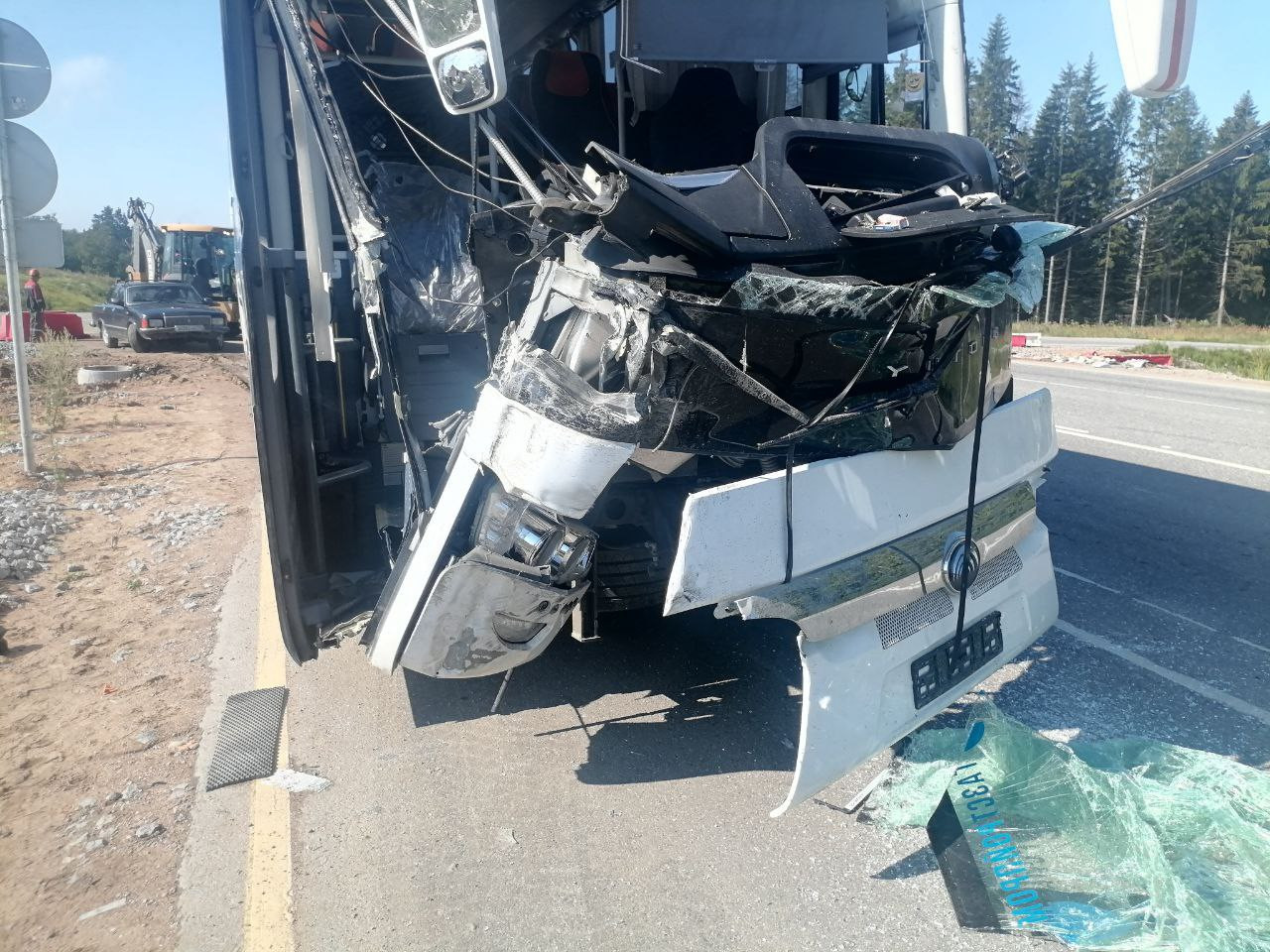 "Самосвал летел с такой скоростью, что уехал после удара метров на 200-250. Когда автобус начал выезжать, большегруза еще не было видно" ..."Мы были метрах в пяти от автобуса, когда он отлетел от удара, слава Богу не в нас", – рассказывают в соцсетях очевидцы.