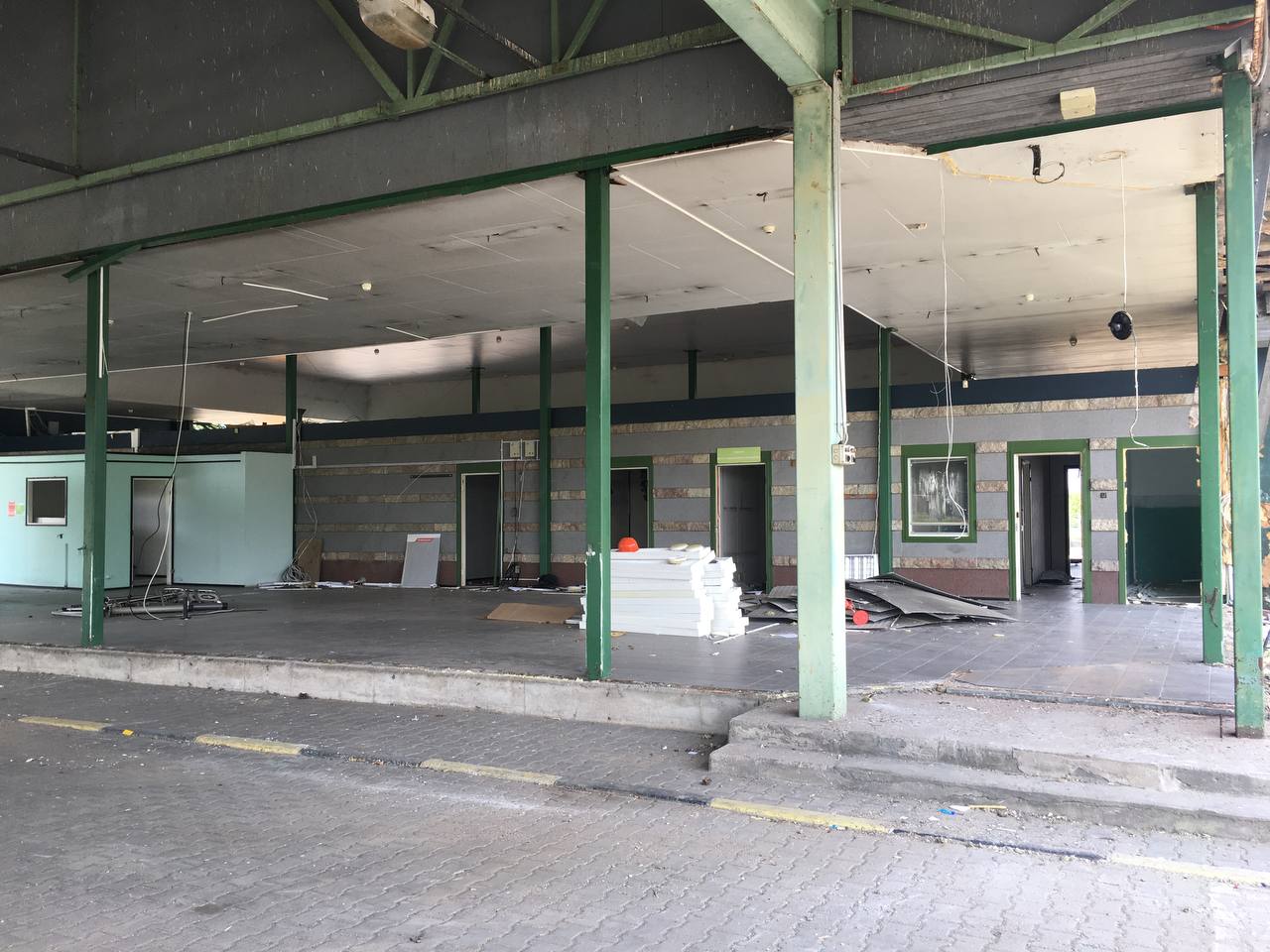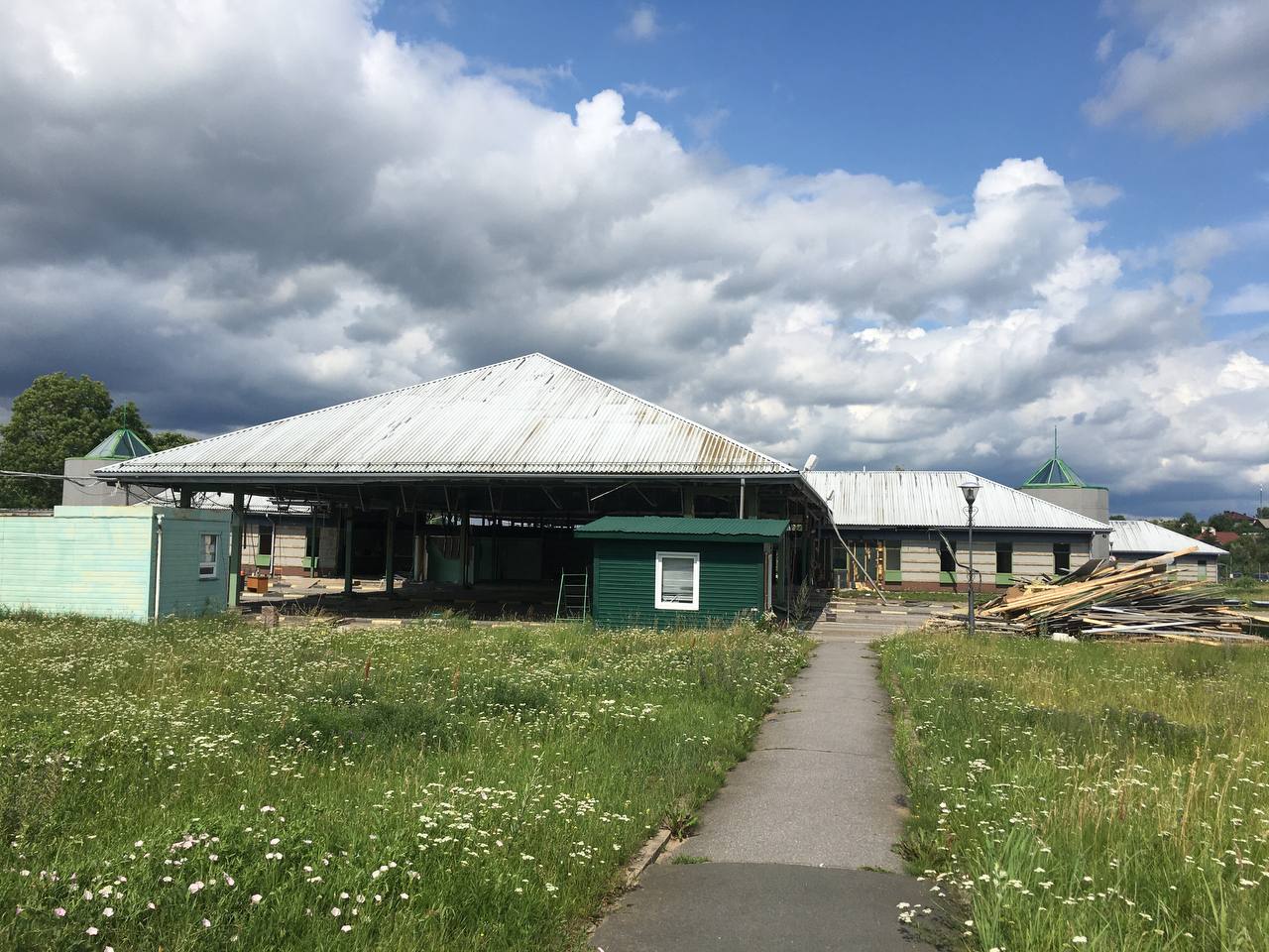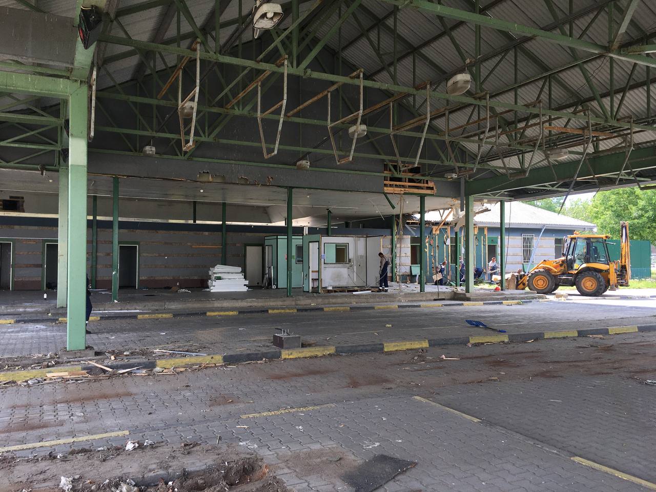 На территории пункта пропуска начались демонтажные работы старых зданий и помещений. Должностные лица таможенного поста МАПП Ивангород Кингисеппской таможни обеспечивают работу на пешеходной составляющей пункта пропуска во временном здании.