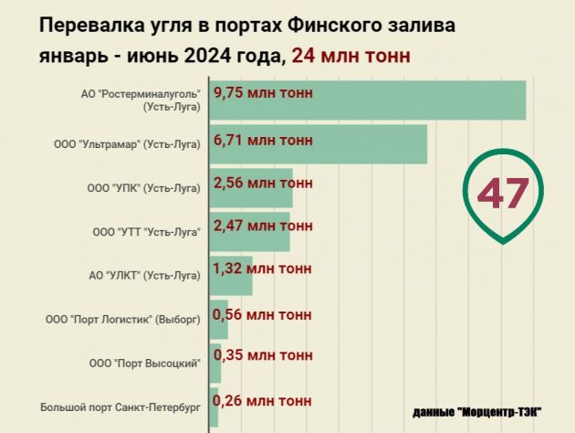 По итогам первых шести месяцев 2024 года через российские порты Балтийского моря на экспорт отправлено более 24 млн тонн угля, сообщает 23 июля 47news.