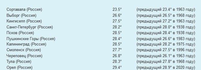 Кингисепп отличился отметкой термометров в 27,5 градусов. Последние максимальные значения зафиксированы в 1963 году. Они соответствовали 27,2 градусам тепла.