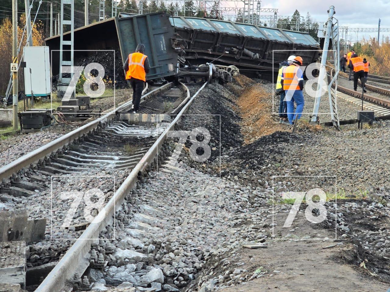 Два вагона грузового поезда сошли с рельсов на станции Лужская в Кингисеппском районе