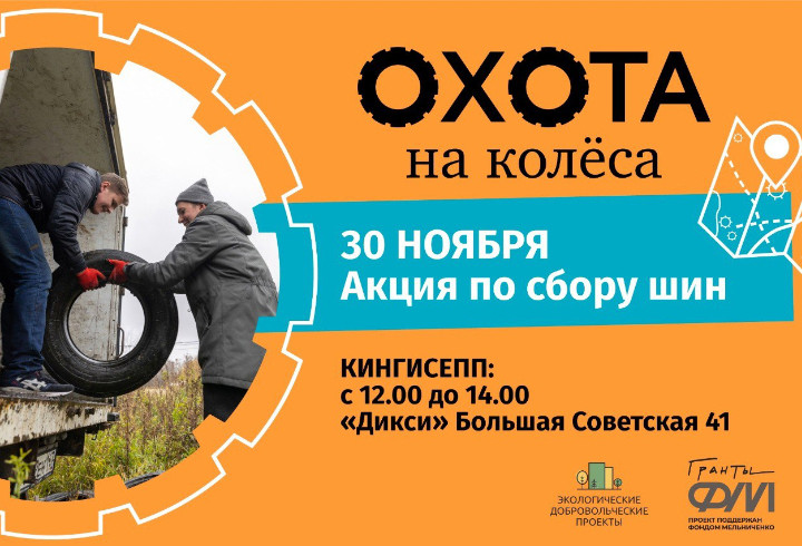 В субботу, 30 ноября, в Кингисеппе пройдет очередная экологическая акция проекта «Охота на колёса», цель которой – сбор и переработка автомобильных покрышек. Волонтеры будут принимать шины с 12 до 14 часов по адресу: ул. Большая Советская, дом 41, рядом с магазином «Дикси».