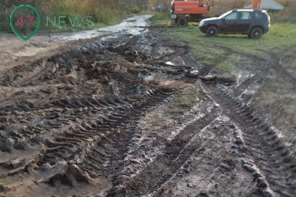 "Пока погода позволяла - сняли покрытие, сформировали дорожное "корыто". А потом началось. Субподрядчик говорит: "Материалы кончились, у меня в смете только песок, геоткань и ЩПС (щебеночно-песчаная смесь), дренажа нет, я снимаю технику и уезжаю". Такое впечатление, что он материалы стал у нас по округе искать. В соседней деревне Жабино коровник разобрали, так у нас на дороге арматура появилась. Потом шпалы на дорогу укладывать стали, чёрные от угля. С какой железной дороги они их сняли? И дожди зарядили, всё потекло. В огородах лужи. На некоторые участки просто не зайти. Рядом с деревней поле - 3 гектара. Всё что с дороги было поднято - теперь на нём. Оно всё теперь загажено. Про сено можно забыть", - описывает собеседник 47news свои две недели в перекопанной деревне Серёжино.