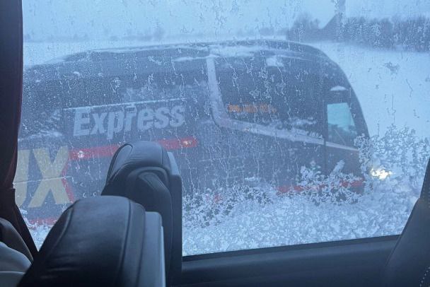 Сразу три пассажирских автобуса застряли в сугробах в Эстонии. Транспорт следовал до пункта пропуска «Нарва – Ивангород»