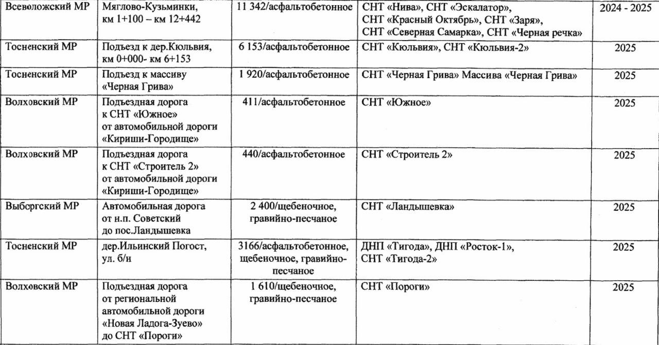 20 дорог к СНТ Ленобласти отремонтируют в 2025 году