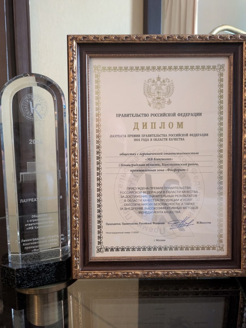 Качество на высоте! «МВ Кингисепп как Лауреат правительственной премии 2024 года получили свою награду»