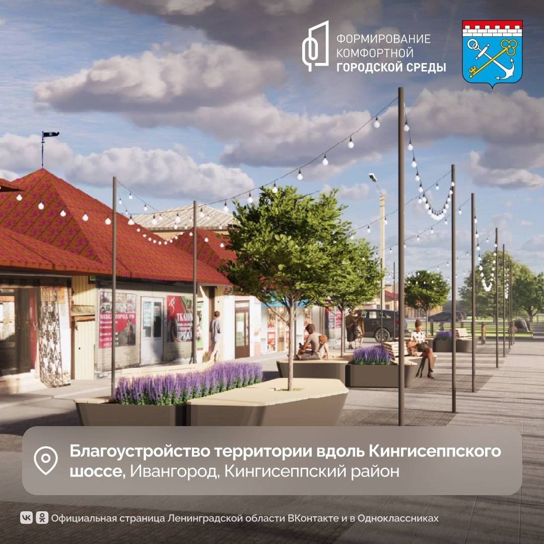 В Ивангороде благоустроят общественную территорию вдоль Кингисеппского шоссе. Дизайн-проект предлагает раскрытие потенциала территории рыночной площади. В том числе, будет проведена полная замена асфальтобетонного покрытия на тротуарную плитку, озеленение и организована подсветка. Проезд у дома №22 предлагается сделать пешеходным, а на территории у дома №26 расположится уличная галерея.