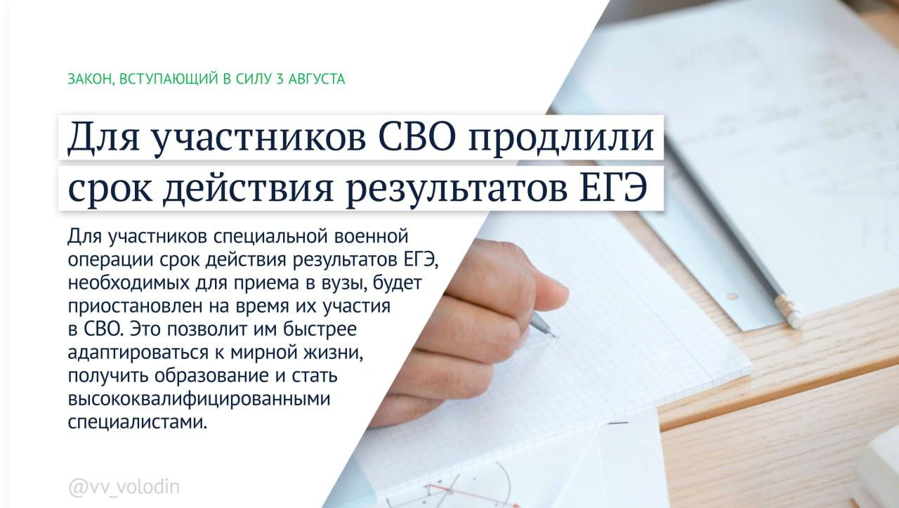 Для военнослужащих, участвующих в специальной военной операции, продлевается срок действия результатов ЕГЭ.