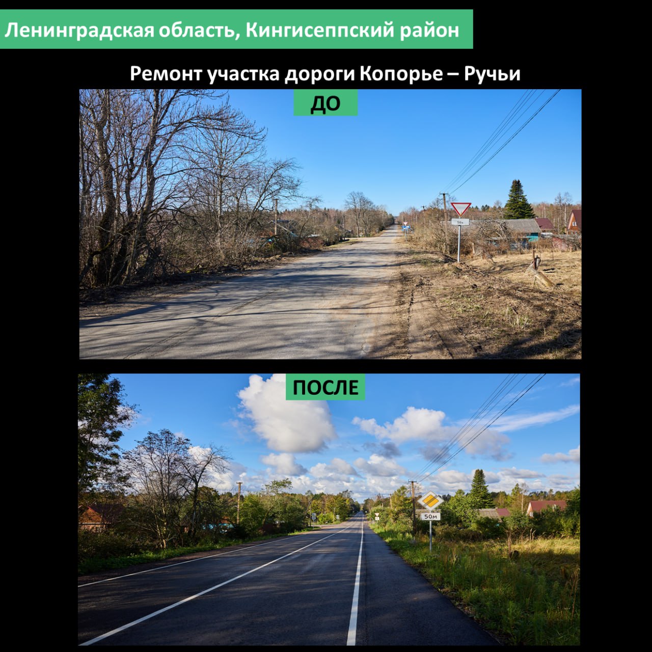 В Кингисеппском районе завершился ремонт участка дороги Копорье – Ручьи