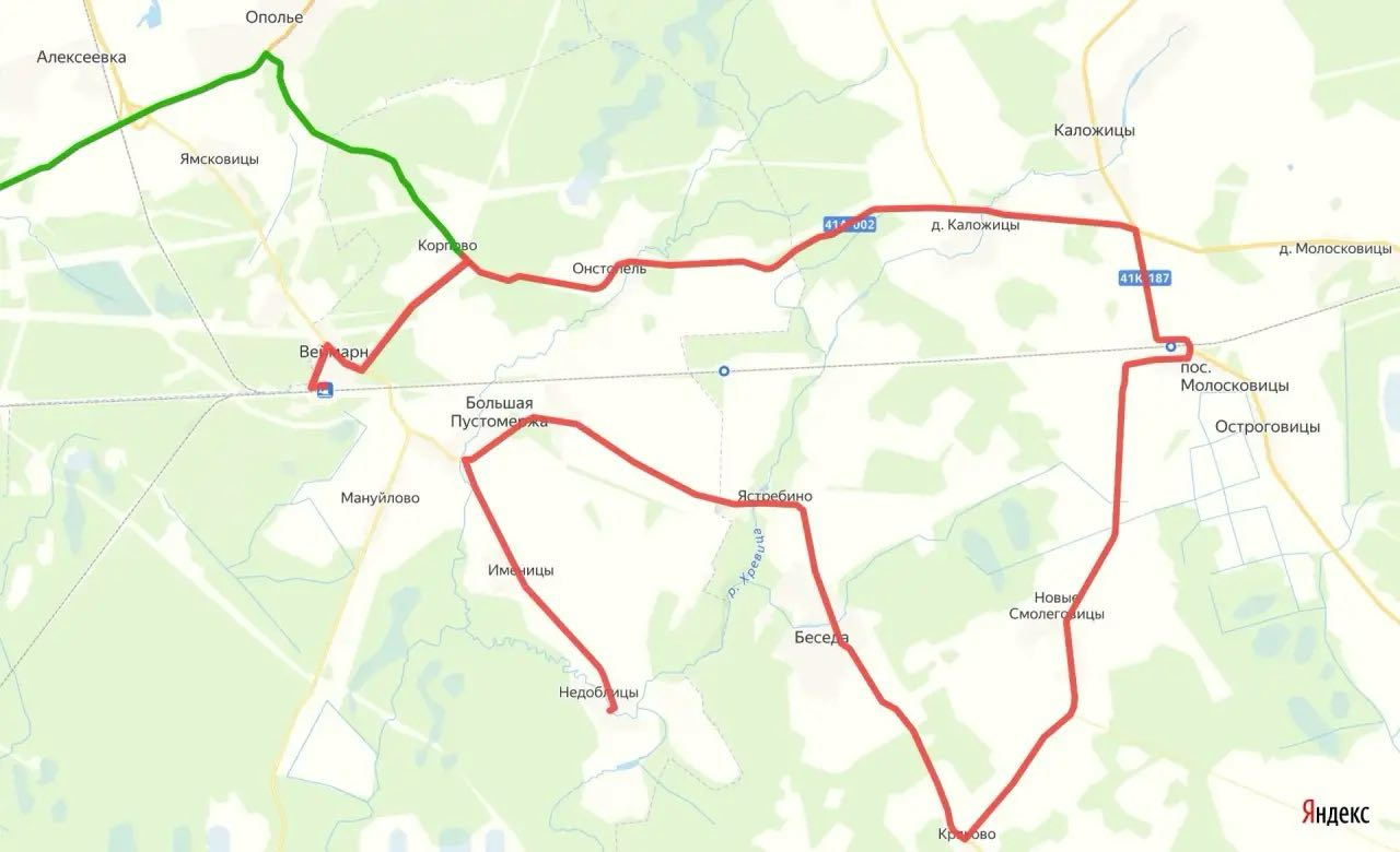 Маршруты проследуют по объездной трассе через железнодорожную станцию Молосковицы. Время в пути по маршрутам увеличится.