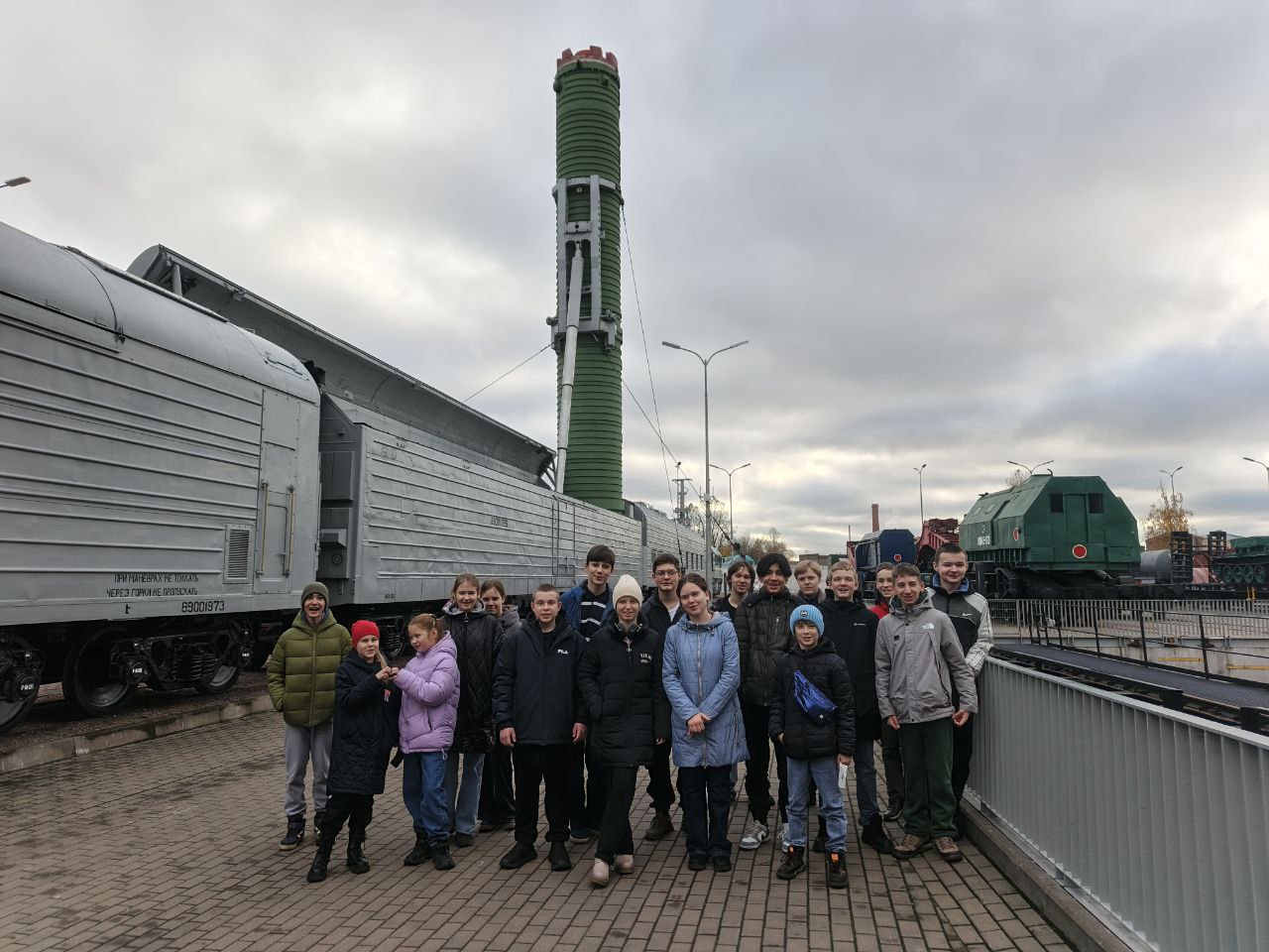 Рядом с этим историческим экспонатом стоял пример современной военной мощи на рельсах – поезд с боевой установкой «Молодец». Ребята смогли оценить масштаб и мощь этого уникального состава, предназначенного для стратегических задач, что наглядно показало им широту применения железнодорожных технологий.