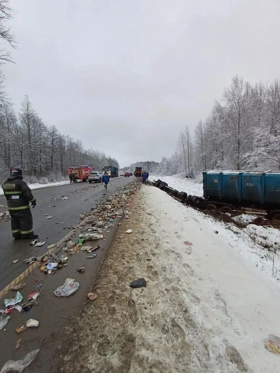 Сегодня в 10:59 поступило сообщение о ДТП на 138 км трассы А-180. Водитель мусоровоза не справился с управлением, в результате чего съехал в кювет. Прицеп опрокинулся на бок. Часть отходов оказалась на дороге, а другая — на обочине.