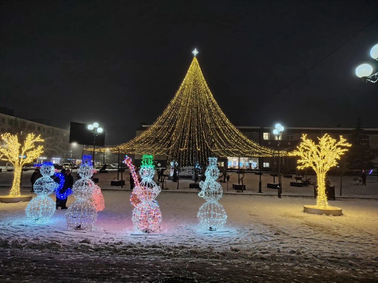 На фото: новогодние елки и украшения в Сосновом Бору, Тихвине и Луге.