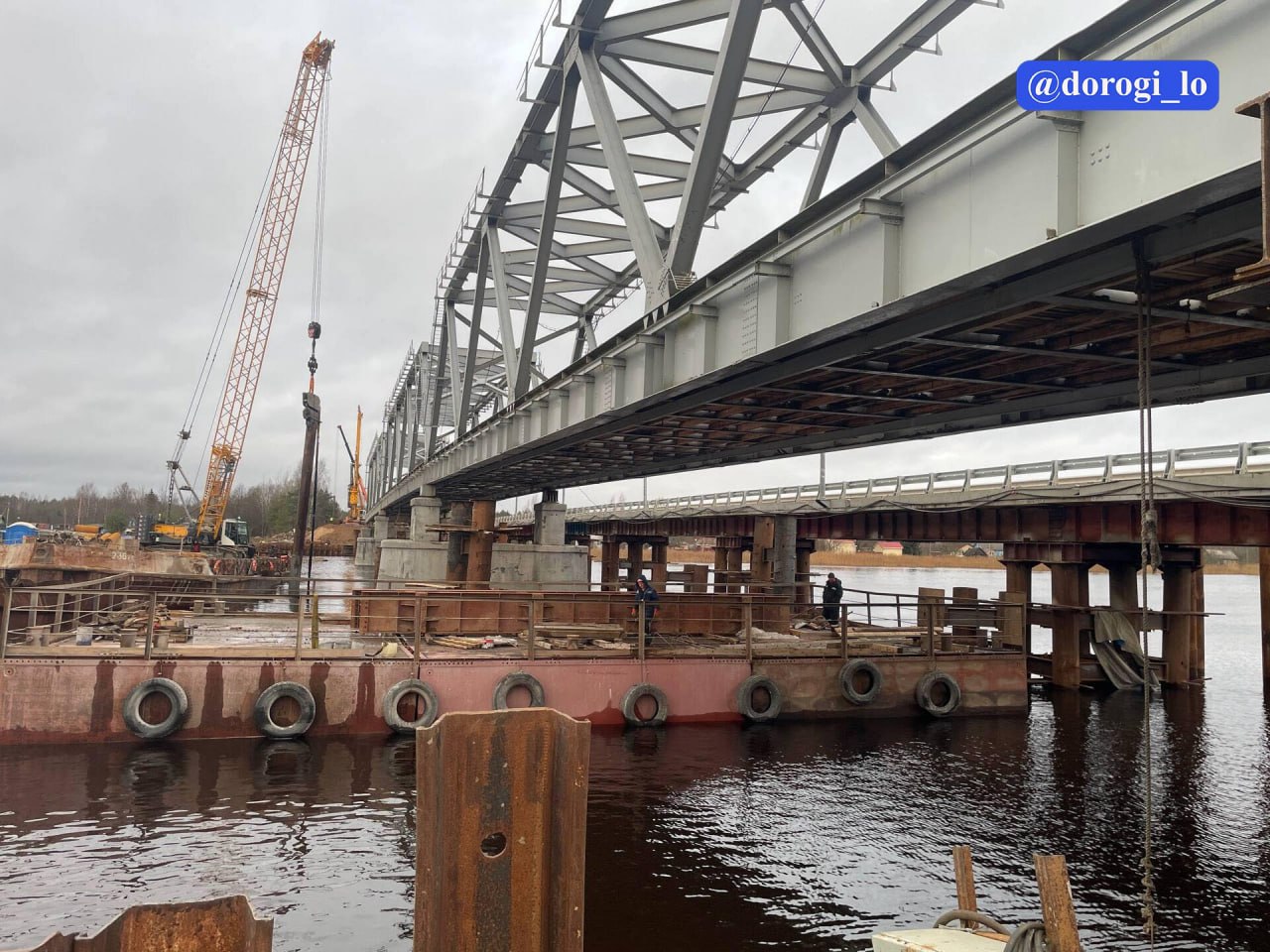 Старый мост через реку Луга в Кингисеппском районе демонтируют, сообщает телеграм-канал Комитета по дорожному хозяйству Ленобласти.