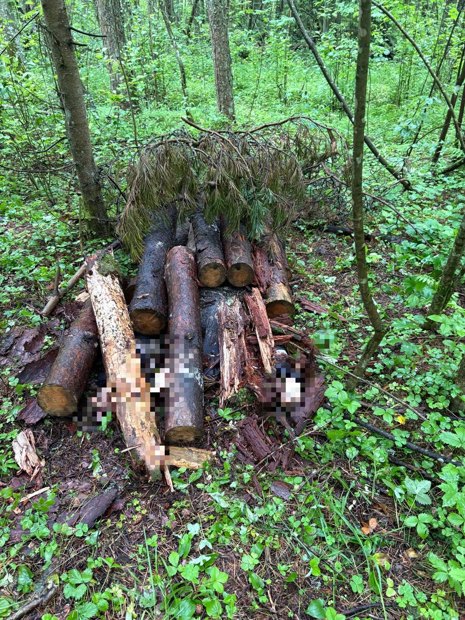 С целью сокрыть совершенное преступление обвиняемые сокрыли тело в лесном массиве, обложив его бревнами и ветками.