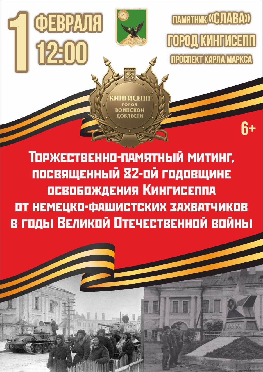 В Кингисеппе 1 февраля в 12:00 состоится торжественно-памятный митинг, посвященный 82-годовщине освобождения города: