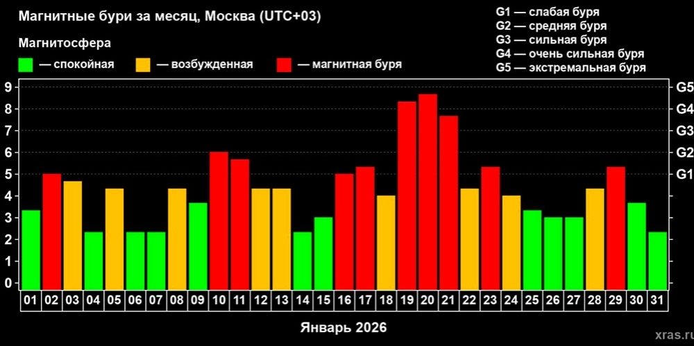 10 из 31: январь 2026 года побил рекорд по числу магнитных бурь