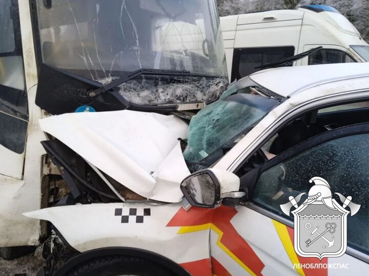 Известно, что водителя иномарки деблокировали и забрали в Гатчинскую ЦРБ. Также госпитализированы две женщины, ехавшие в автобусе. Осматривают пассажиров четыре бригады скорой помощи.