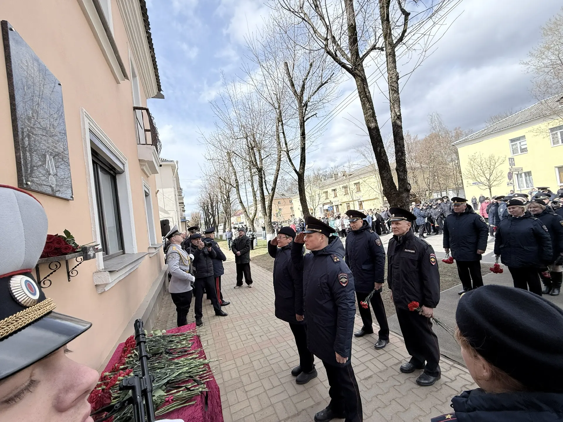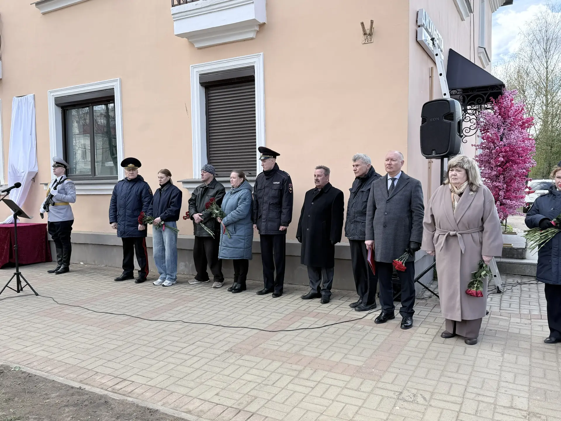 В Кингисеппе торжественно открыли памятную доску лейтенанту полиции Дмитрию Семеновых, погибшему год назад при исполнении служебного долга, сообщает администрации района.