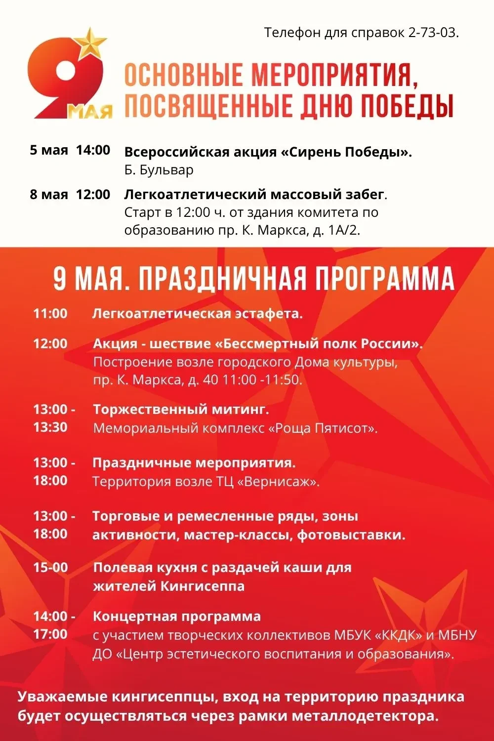 Приглашаем всех жителей и гостей города принять участие в памятных и праздничных мероприятиях!