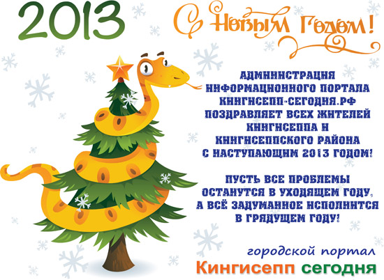 Администрация информационного портала Кингисепп-Сегодня.рф поздравляет всех жителей Кингисеппа и Кингисеппского района с Новым 2013 годом!