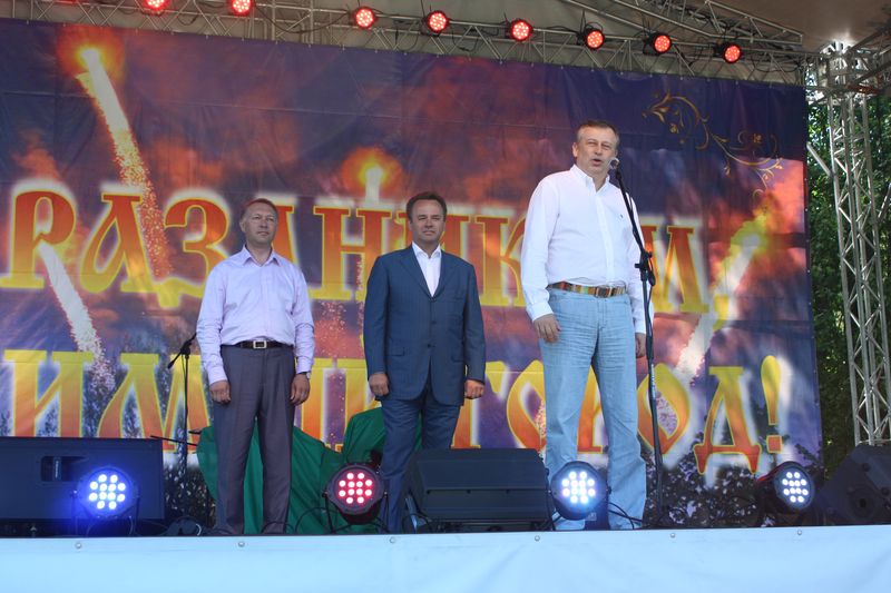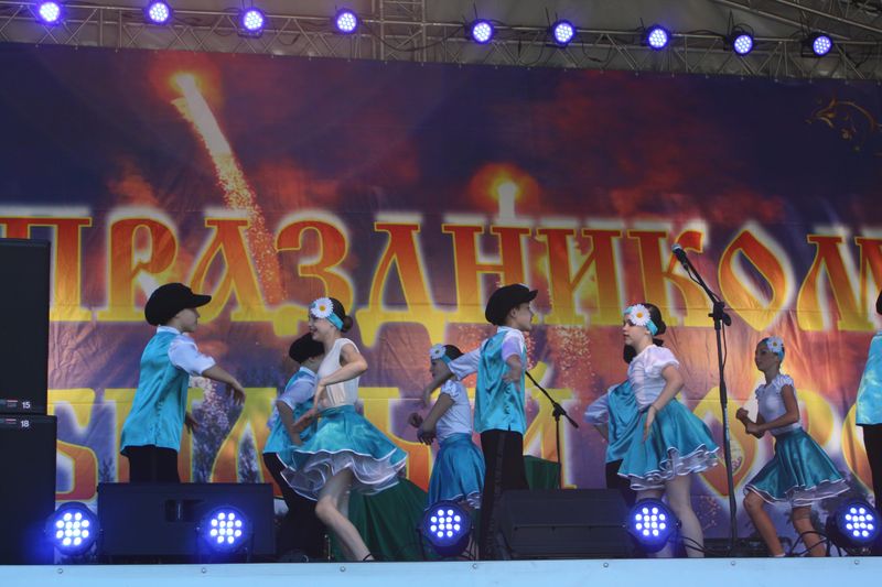 С 13.00 на сцене верхнего парка началась концертная программа с участием, как местных творческих коллективов, так и гостей нашего города. Среди них «Серпантин», который представил своих «Ромашек» на сцене в ярких зеленых сарафанах и белых рубахах. Юная певица исполнила песню «Вдоль по Питерской», маленькие детишки сплясали Ямбургскую польку, затем выступила музыкальная группа «Конфетти» с песней «Маленькие звёзды» под музыку знаменитой мелодии Michel Telo – Nosa, Nosa!
