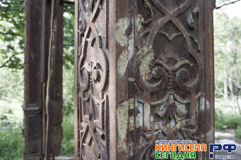 Вытащены все металлические части украшений часовни, работы известного кузнеца Каубиша, остатки которой еще стоят над склепом, напоминая о былой, непревзойденной красоте и изяществе. Остатки того былого великолепия, что мною было убрано в склеп для его сохранения и которое боль шей частью вытащено оттуда и сдано нехристями в металлолом, попросту пропито.