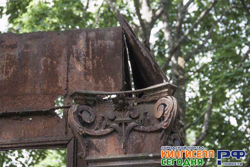 Необходимо в ближайшее время приварить к дверям склепа нижние недостающие листы металла - от проникновения людей внутрь. Больше всего жаль кованые навершия - от боковых колонн, и нижние стеновые панели часовни с узорным кованым орнаментом.
