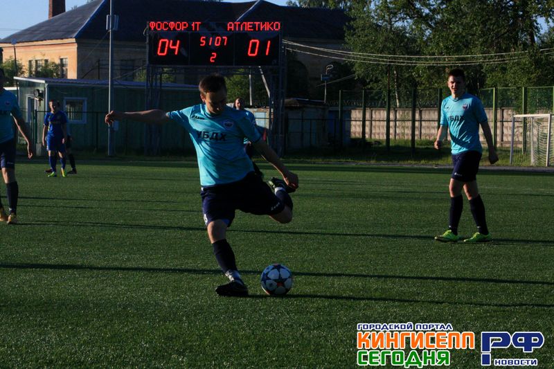 Стадион замер в ожидании, матч начался. «Фосфоритовцы» с первых секунд стали уводить мяч от гатчинцев. Кажется, «Атлетико» не ожидал такого напора сразу. «Жёлто-синие» атакуют ворота противника, пробивают раз за разом. Счёт открывается почти сразу, 1:0 в пользу ФК «Фосфорит». Практически сразу после первого забитого гола, мог бы состояться и второй, но гатчинский вратарь ловко отбивает его. Гатчинцы обеспокоены, они тоже претендуют на выход в 1/4 финала Кубка Лен.области, но не показывают вида и держатся достойно. 13 минута – мяч влетает в ворота Кинисеппской команды. Вратарь не смог отразить удар. Игра стремительно набирает обороты, команды готовы к нешуточной борьбе! Практически все передачи, которые делали футболисты «Фосфорита», были голевыми. Моментов, чтобы забить гол было очень много! Это принесло свои плоды - с 20 минуты «жёлто-синие» практически не отходили от ворот соперника, пытаясь пробить. Гол, еще раз гол! «Фосфорит» сегодня в ударе. Первый тайм заканчивается разгромным поражением «Атлетико». Счёт 4:1. Но у Гатчинской команды есть еще целых 45 минут, чтобы наверстать упущенное и показать весь свой потенциал.