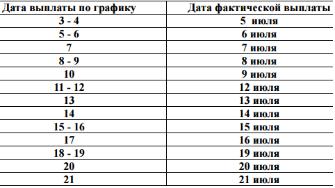 График выплаты пенсий, ЕДВ и иных социальных выплат в июле 2016 года