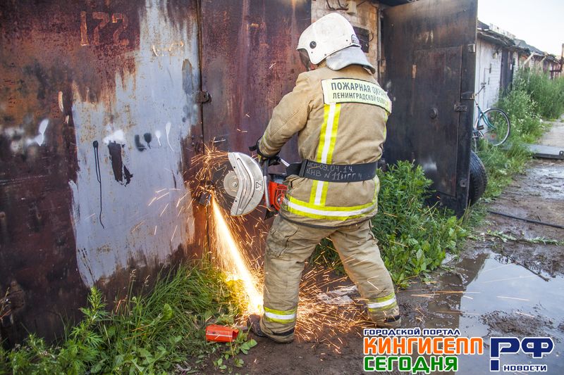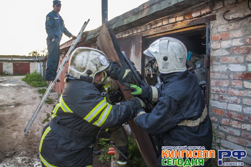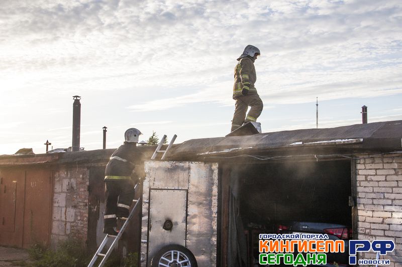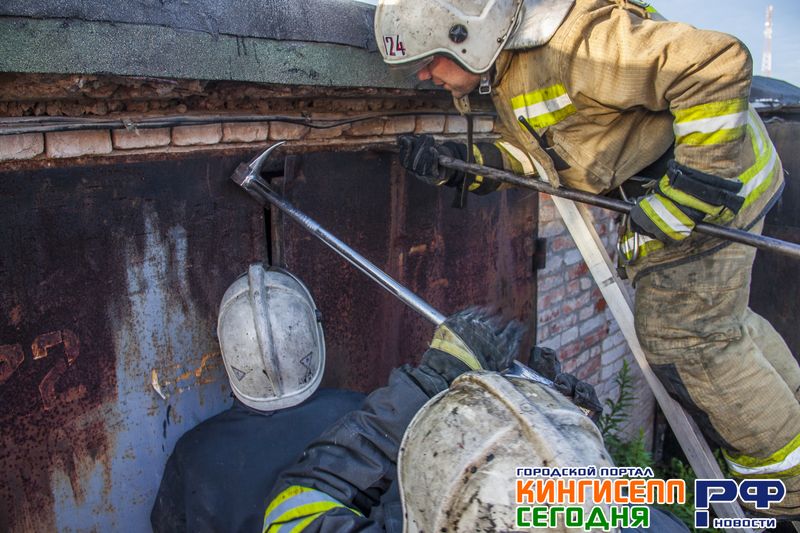 В 20.50 прибыв на место ЧП, в одном из гаражей спасатели обнаружили задымление. Было принято решение вскрывать дымящийся гараж.