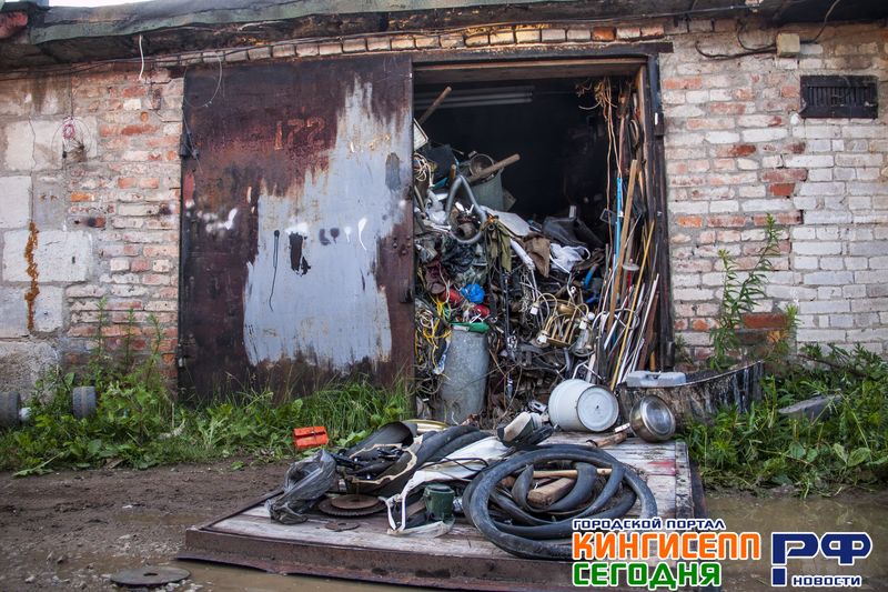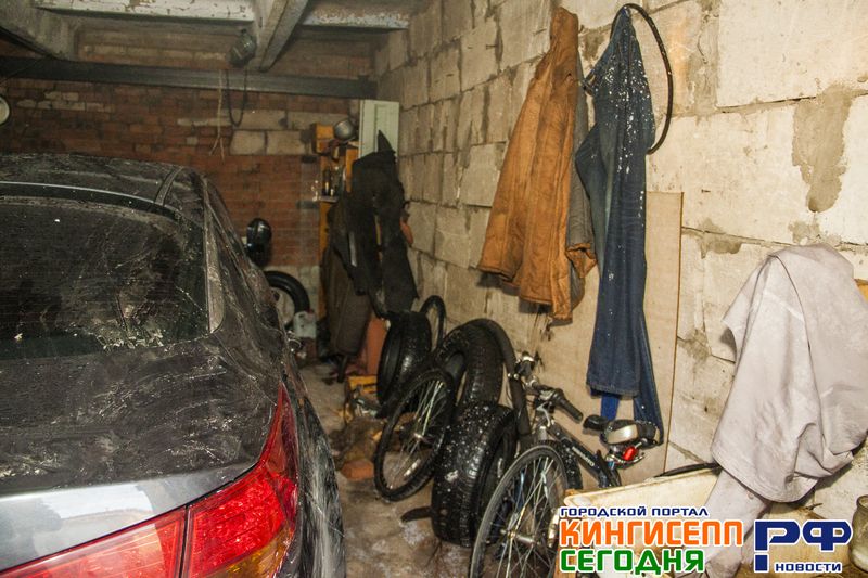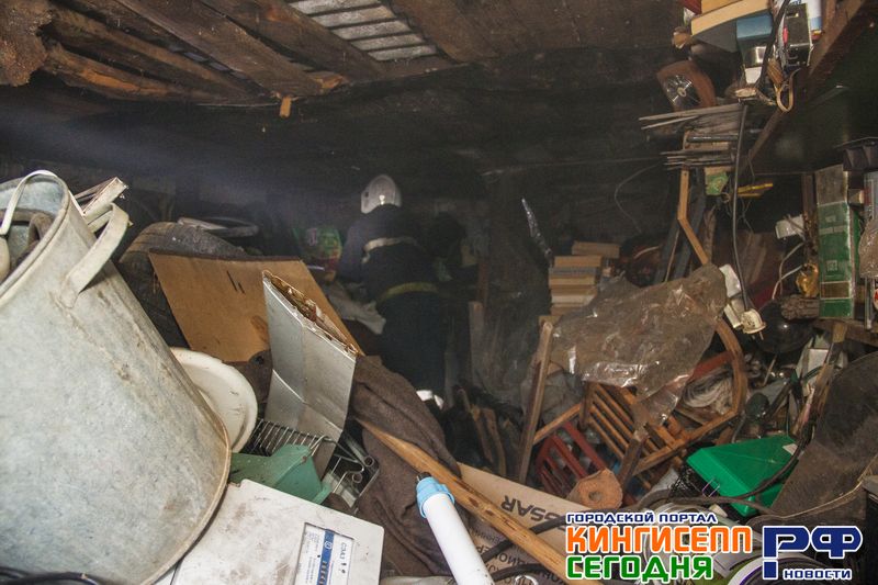 Нагромождение различных вещей. Старые люстры, портупеи, велосипедные камеры, рыболовные снасти, ложки и т.п. Словом, забраться внутрь «подозреваемого» в возгорании гаража было непросто.