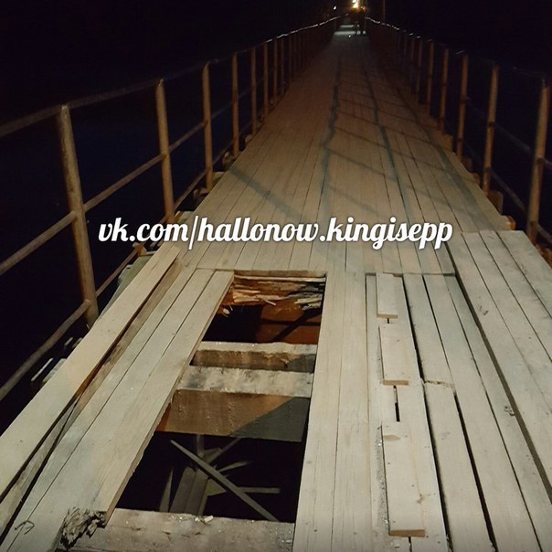 Местные жители сообщают, что пару дней назад всё было в порядке. А накануне выходных в мосту появилась огромная дыра.