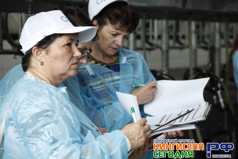 Специальная форма, бахилы и фартуки. Конкурсанты готовы к состязанию. Но перед тем как войти в доильный зал и показать свои навыки и профессионализм необходимо было выполнить тестовое задание.