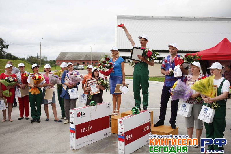 И вот наступает момент истины - вручение грамот и выявление победителя. Каково было удивление зрителей, когда из 20 человек осталось всего трое - двое мужчин и одна девушка. Казалось бы, доить коров совсем не мужское дело, но парни доказали обратное. Третье место занял Шубалый Тарас из Всеволожского района, второе место заняла Попова Татьяна из Приозерского района. И победителем 34 районного областного конкурса операторов машинного доения и обладателем главного автомобиля стал Игорь Бушуев из Кингисеппского района.