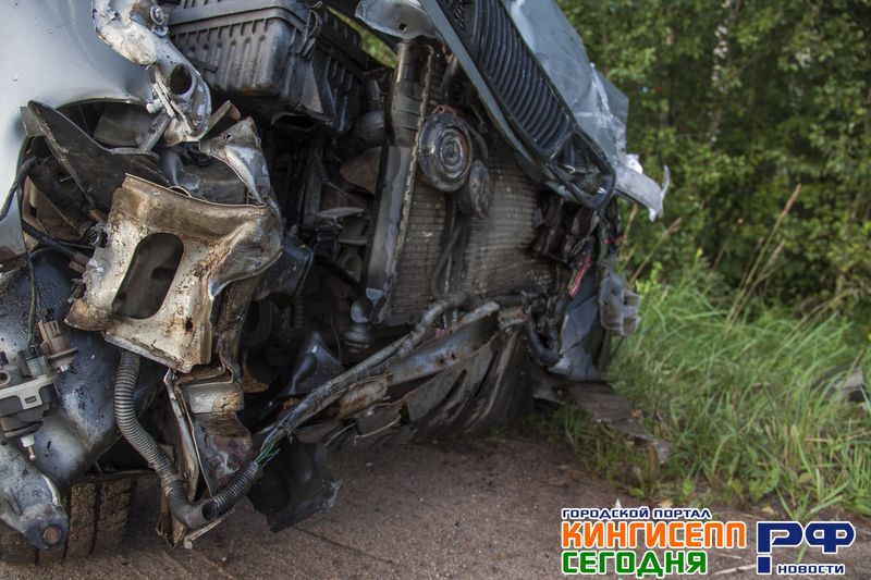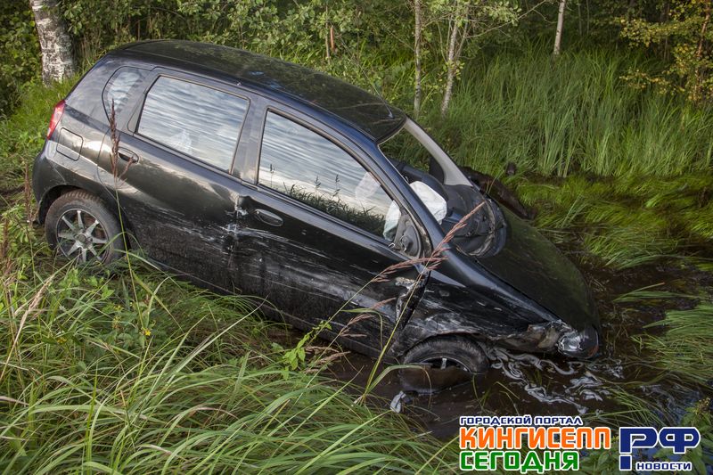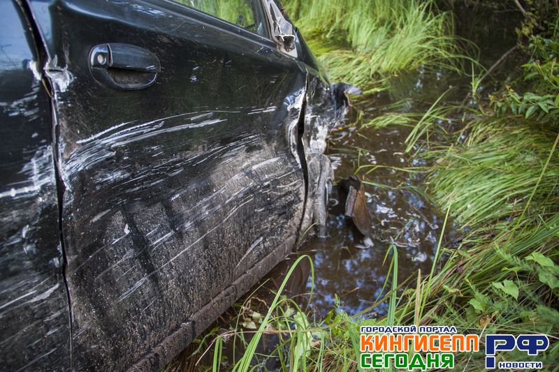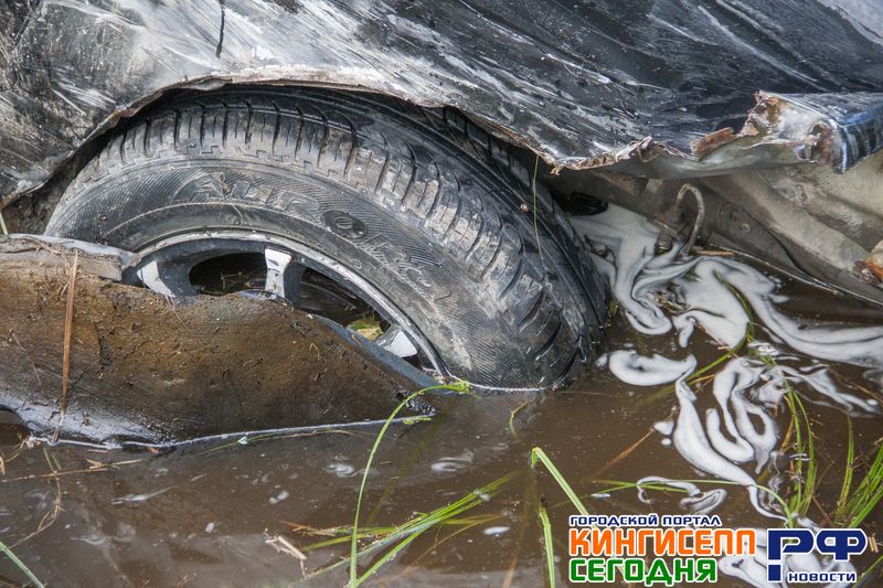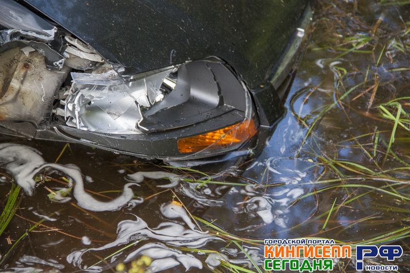 После лобового ДТП в Кингисеппе иномарка угодила в водоем. Фоторепортаж